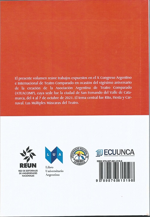 El volumen reúne trabajos expuestos en el X Congreso Argentino e Internacional de Teatro Comparado, en ocasión del vigésimo aniversario de la creación de la Asociación Argentina de Teatro Comparado, que tuvo como sede la ciudad de San Fernando del Valle de Catamarca. El tema central fue Rito, Fiesta y Carnaval. Las Múltiples Máscaras del Teatro. Dicho congreso fue un homenaje al gran dramaturgo catamarqueño Juan Oscar Ponferrada. También el libro está dedicado a Ponferrada; dos artículos están dedicados a una de sus obras.