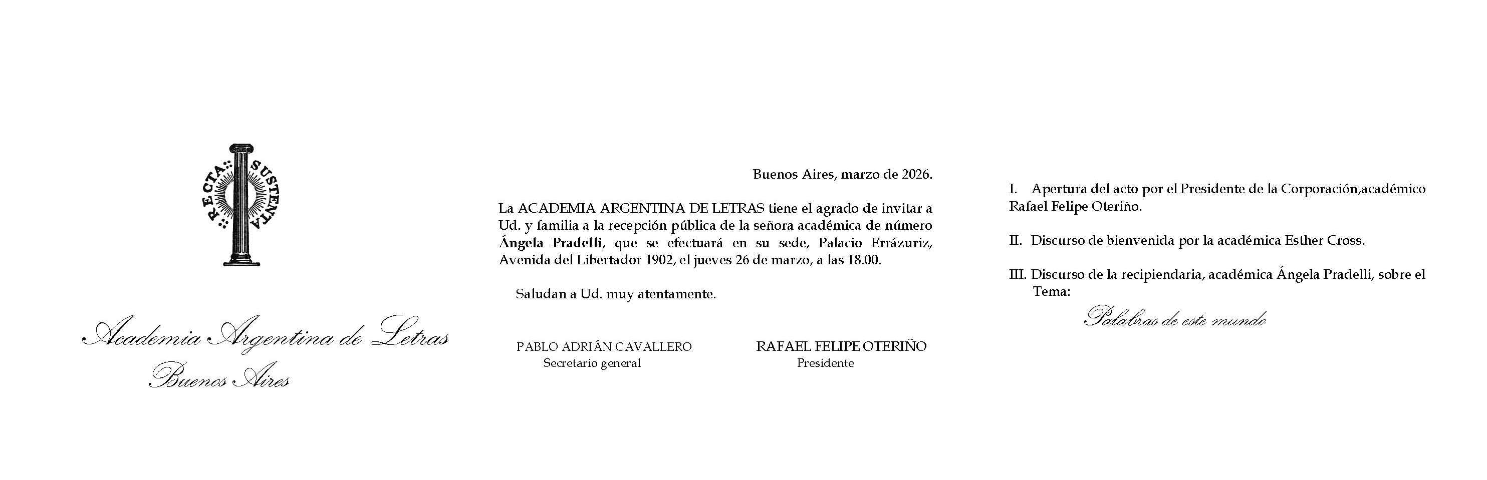 El jueves 26 de marzo, a las 18 hs, se realizará en la Academia Argentina de Letras la incorporación pública de la académica de número Ángela Pradelli.